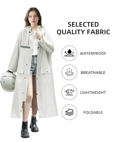 Long Hooded Raincoat Safety Waterproof Emergency Reflective with Packable Rain Jacket Poncho for Men Women Adults 4