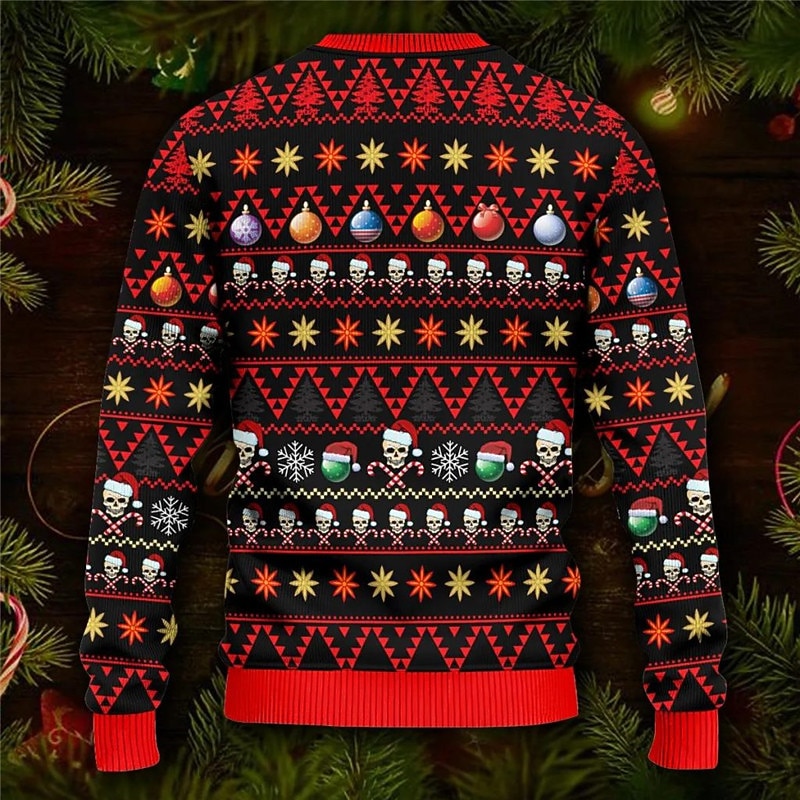 Ugly Christmas Sweater Men's Xmas Pullover Sweaters Skull Gothic Knitting Print Jumper Knitwear New Years Eve Sweater Outdoor Daily Vacation Long Sleeve Crewneck Sweaters Wine 11