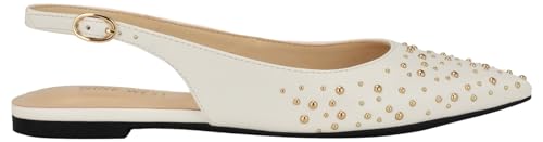 • Complete your look in the Nine West Beamz dress flat. It features a stylish pointy toe, embellishments and an adjustable slingback strap. This flat is sure to impress! Founded in 1978, Nine West empowers women to take on the world in style, from day to night.