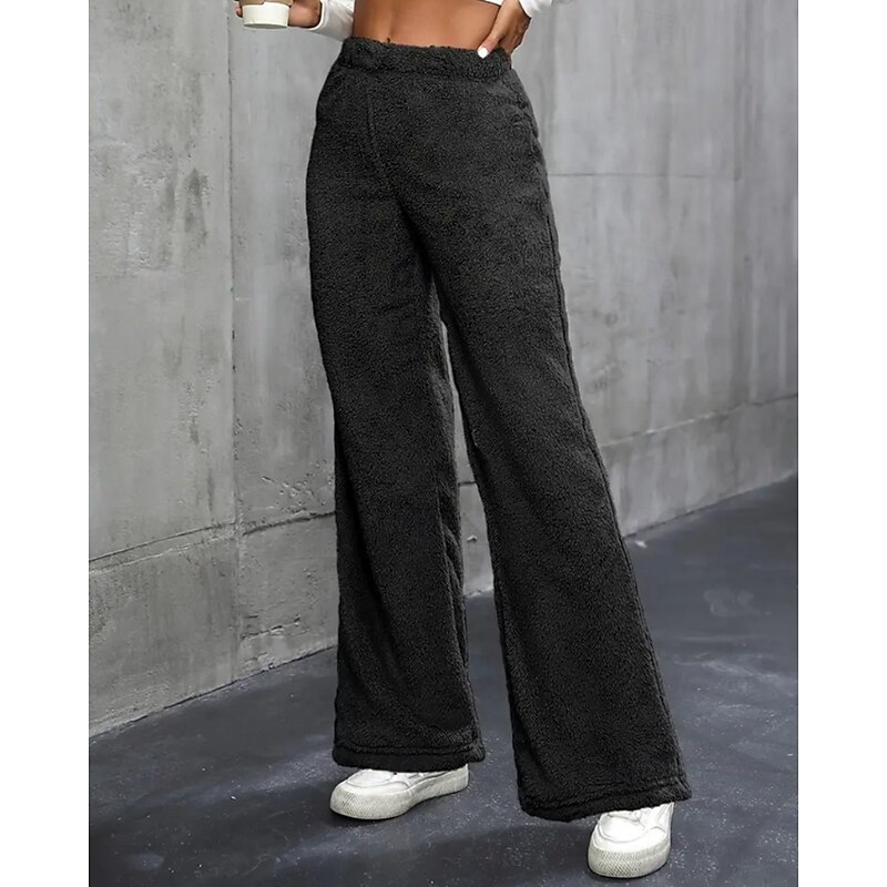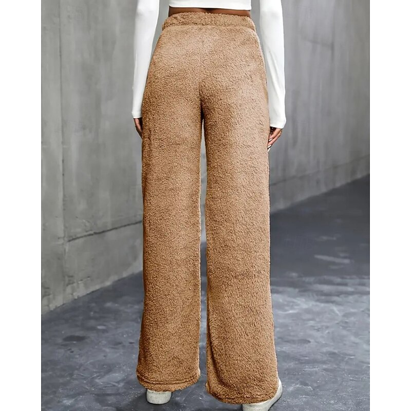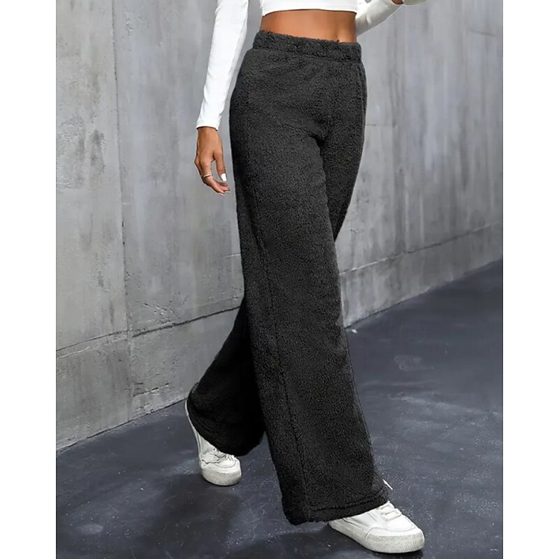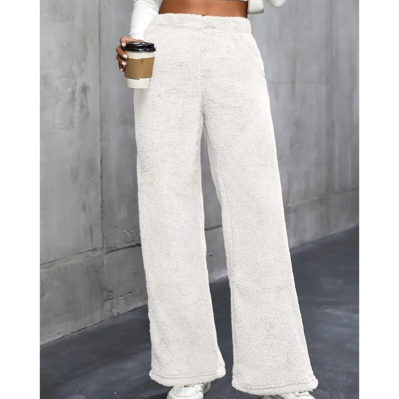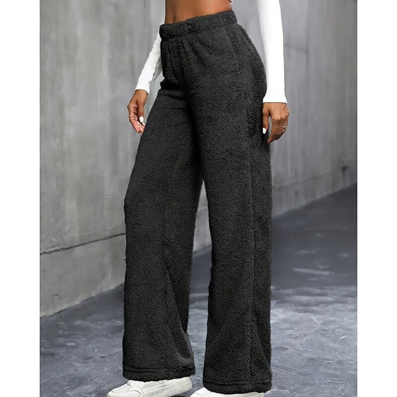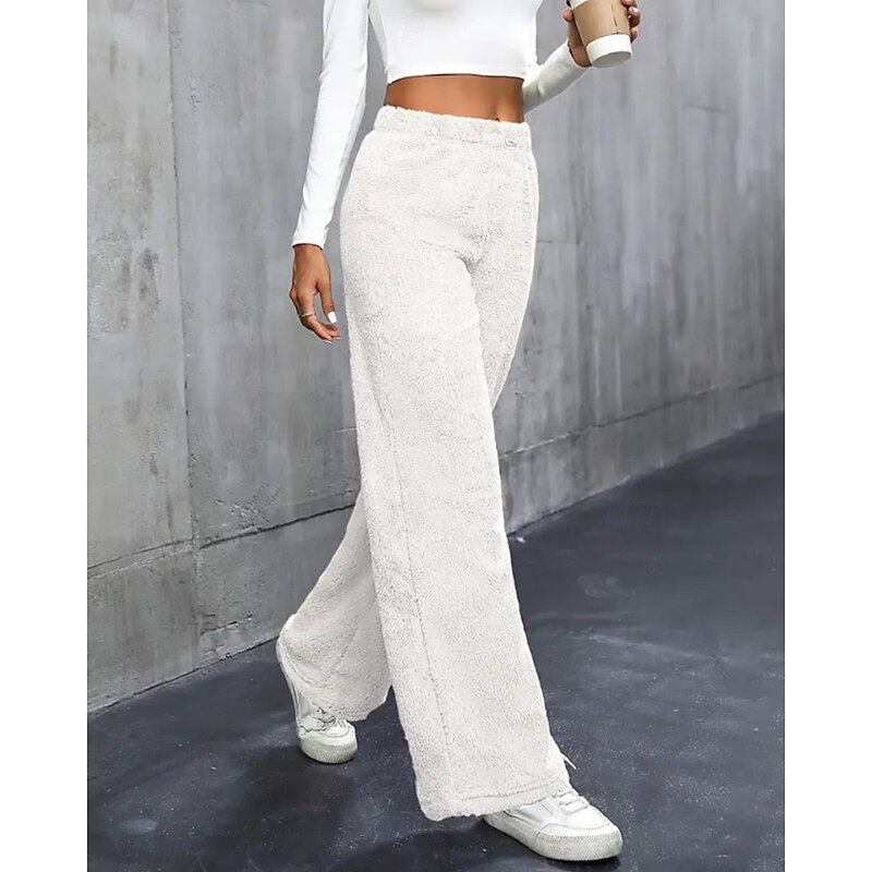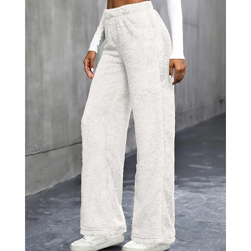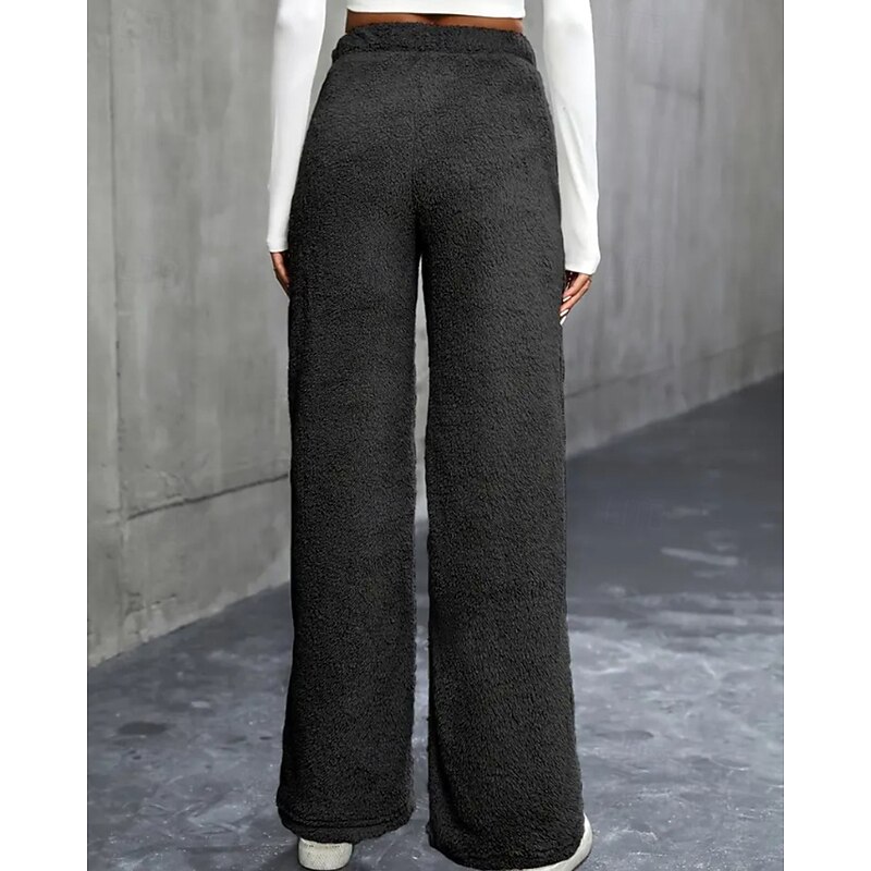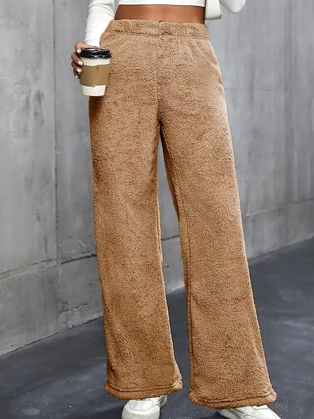 More information about Women's Fleece Pants Wide Leg Slacks Streetwear Casual Full Length Natural Plain Elastic Waist Comfortable Holiday Going out Weekend Grey Black White Khaki Fall Regular Fit