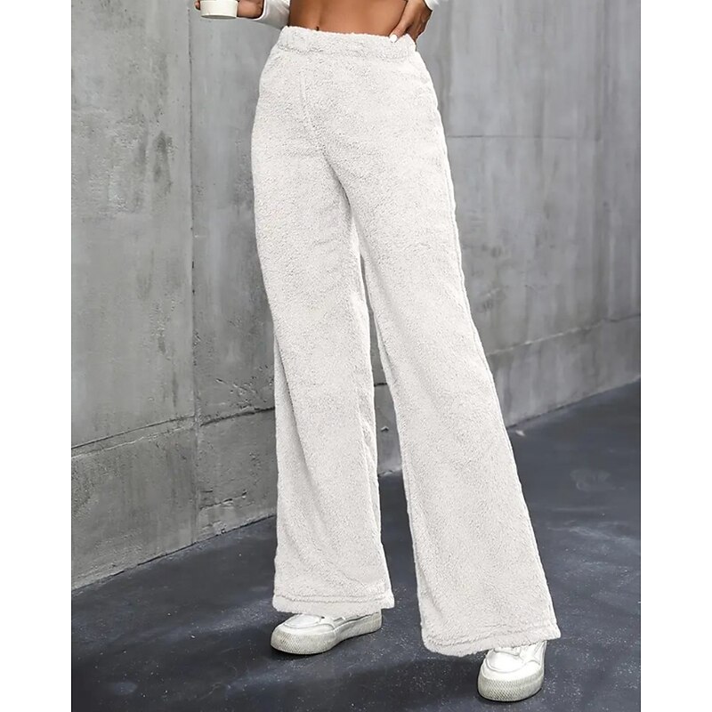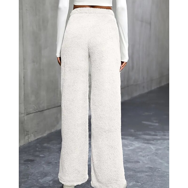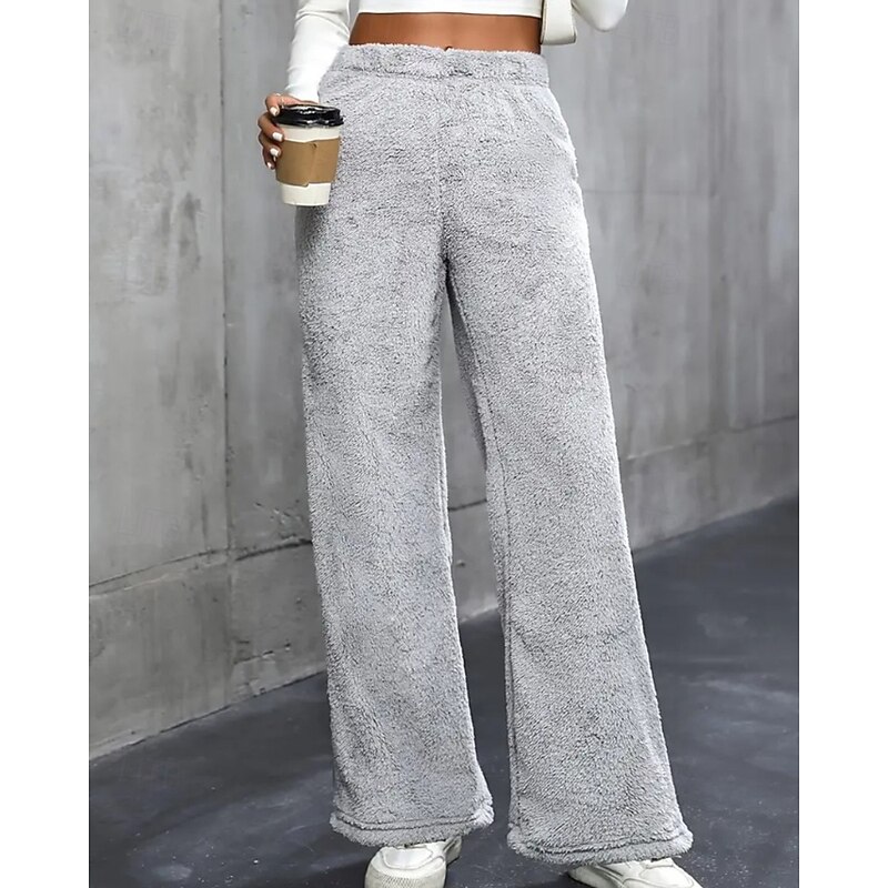 Women's Fleece Pants Wide Leg Slacks Streetwear Casual Full Length Natural Plain Elastic Waist Comfortable Holiday Going out Weekend Grey Black White Khaki Fall Regular Fit 21