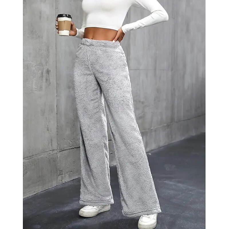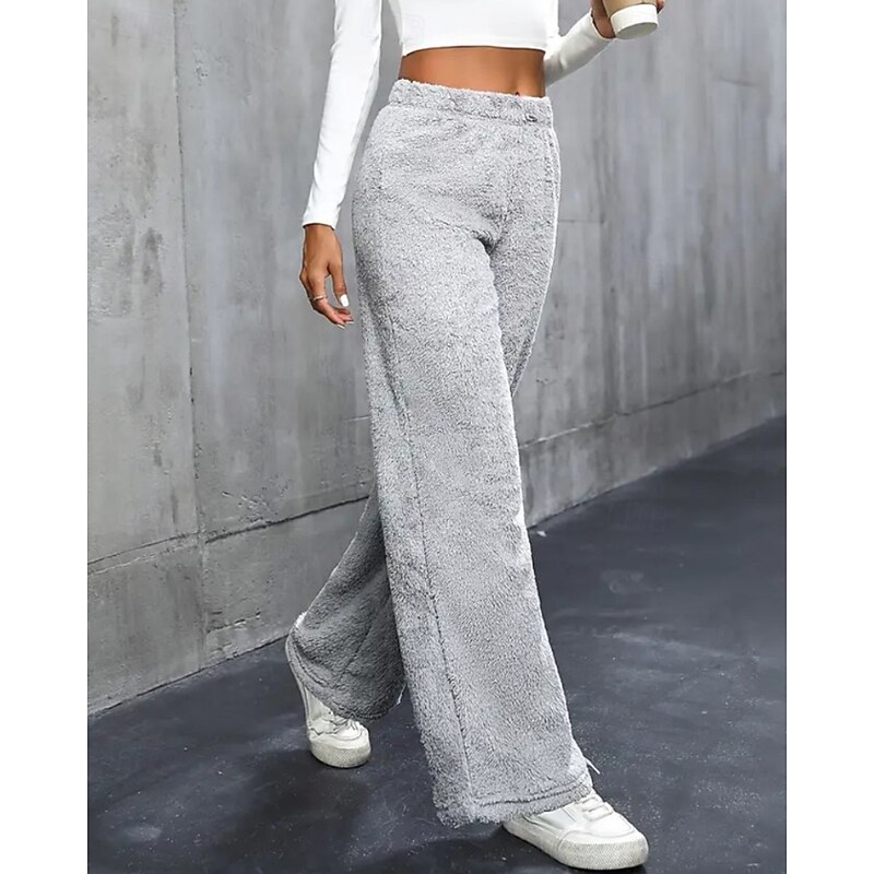 Women's Fleece Pants Wide Leg Slacks Streetwear Casual Full Length Natural Plain Elastic Waist Comfortable Holiday Going out Weekend Grey Black White Khaki Fall Regular Fit 10