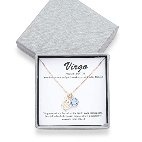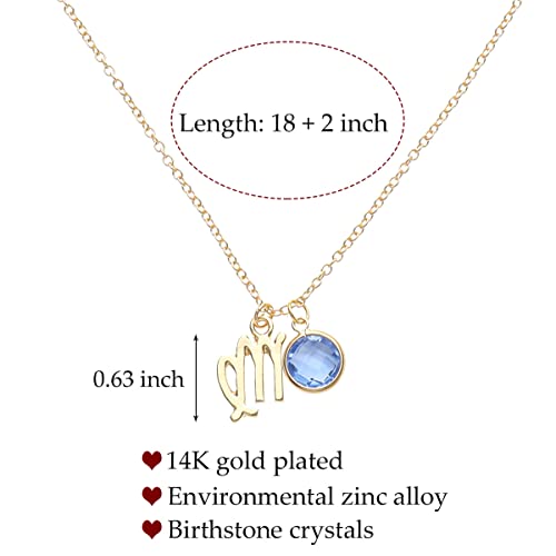 More information about 14k Gold Plated Zodiac Birthstone Crystal Pendant Necklace, Horoscope Sign Charm Necklace for Women Birthday Gift