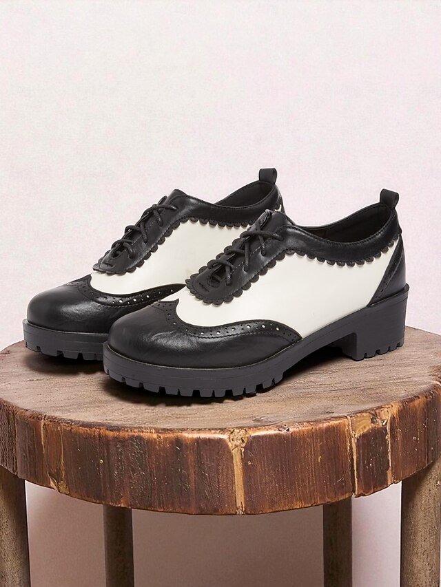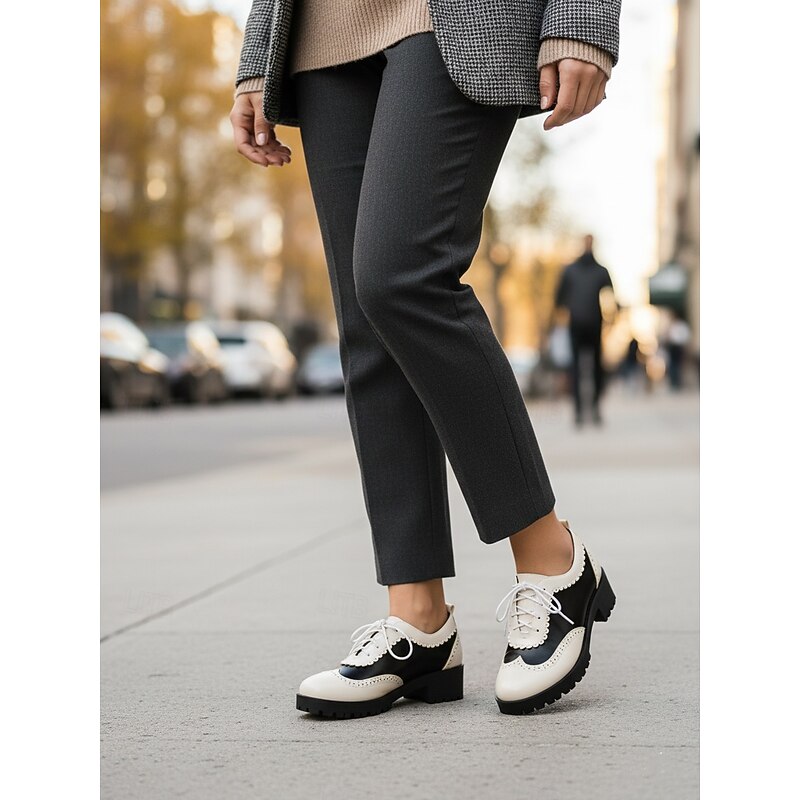 Women's 1950s Vintage Black and White Oxford Brogue Shoes with Lace-Up Design and Low Block Heel - Retro Oktoberfest Footwear for Casual Wear, Work and Cosplay Outfits 18