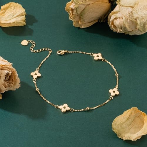 14K Gold Anklets for Women Four-Leaf Clover 14K Gold Ankle Bracelets for Women Golden Jewelry for Womens Anklets Bracelets Romantic Floral Adjustable 9.4+1.6in 6