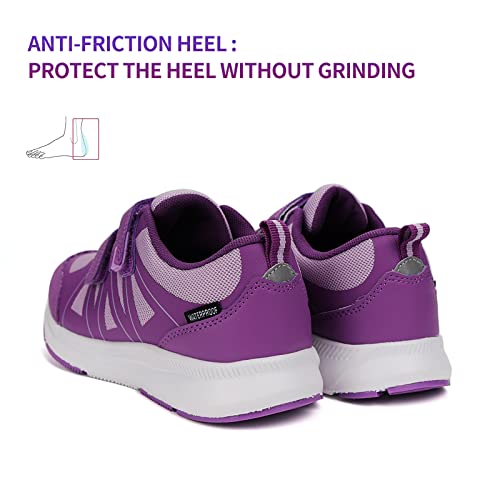 Waterproof Kids Sneakers for Boys Girls Running Walking Shoes with Easy ON/Off Hook-and-Loop Strap, Anti-Slip Lightweight Soft (Big/Little Kids) 4