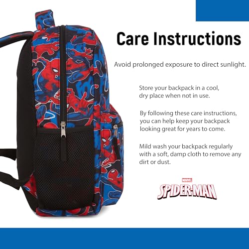 • Web-Slinging Style & Comfort: This Spider-Man backpack is designed to bring superhero flair to everyday adventures. Measuring 17"H x 12"W x 5"D, it features vibrant designs with Spider-Man graphics. Perfect for school, camp, or travel, it offers padded adjustable shoulder straps and a breathable mesh back for all-day comfort. Whether heading to class or swinging into action, this backpack is a must-have for Marvel fans.