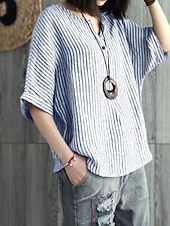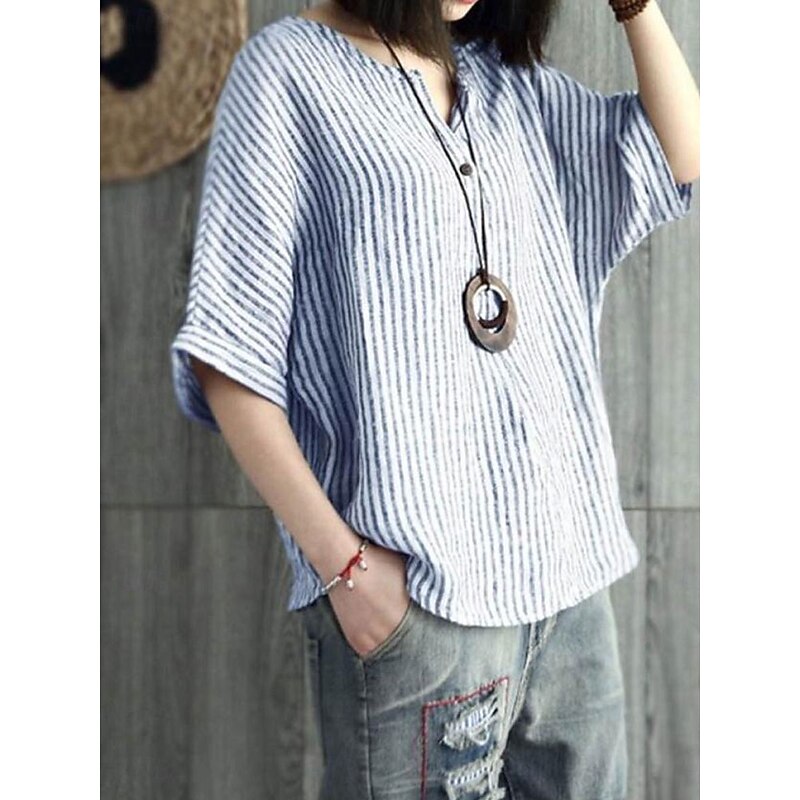 More information about Women's Cotton Linen Blouse Graphic Elegant Vintage Stylish Short Sleeve V Neck Regular Tops Daily Holiday Buttons Blue Gray Summer Spring