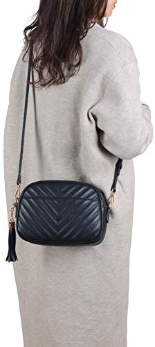HOT ! lola mae Quilted Crossbody Bag, Medium Lightweight Shoulder Purse Top Zipper Tassel Accent