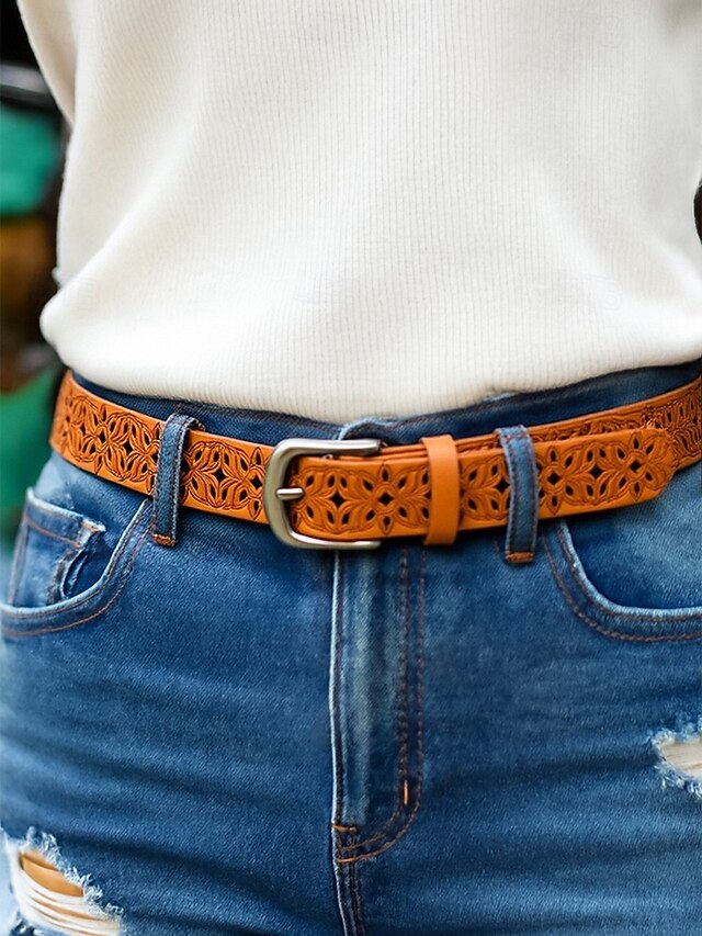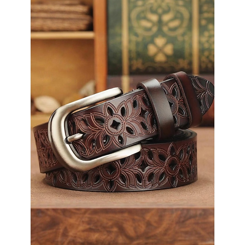 $14.99 - Women's Genuine Leather Belt – Vintage Floral Carved Design with Metal Buckle, Retro Waist Accessory for Jeans, Dresses & Casual Outfits 2025. Shop for cheap Women's Belt online? Buy at lightinthebox.com on sale today!