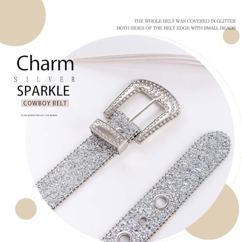 Cowgirl Belts for Women Bling Belt Silver Rhinestone Western Belt for Jeans Pants 3
