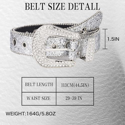 Cowgirl Belts for Women Bling Belt Silver Rhinestone Western Belt for Jeans Pants 4