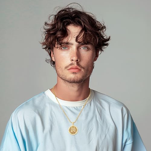 • 【Archangel Michael Necklace】St michael pendant for men is crafted of 925 sterling silver, 18k gold plated. The chain is made of stainless steel. Exquisite polishing process, high polished, will not appear dull after a long time wearing, hypoallergenic, anti-rust, nickel-free, lead-free, cadmium-free, not contain any allergic elements. Ideal jewelry for men women of all ages