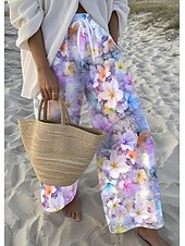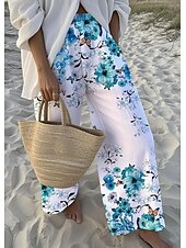 More information about Women's Wide Leg Chinos Baggy Pants Vacation Fashion Hawaiian Full Length High Waist Floral Graphic Drawstring Printing Soft Breathable Micro-elastic Vacation Street Causal Sky Blue And White White