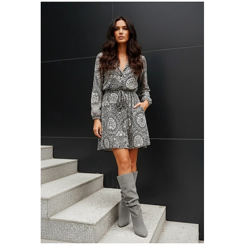 More information about Women's Gray Suede Slouchy Knee-High Boots with Pointed Toe and Block Heels - Elegant Fall and Winter Footwear for Casual and Dressy Occasions