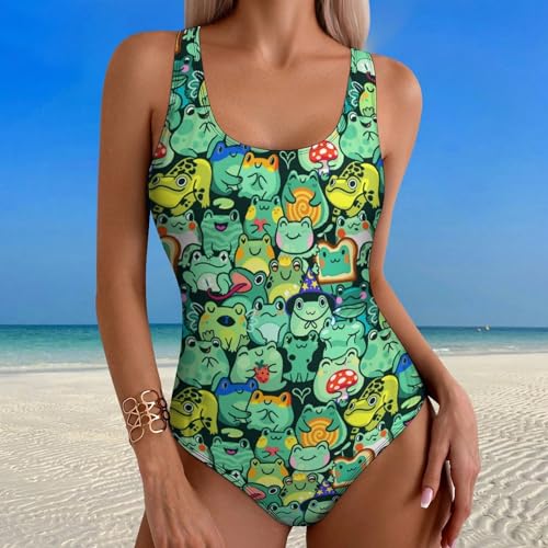 Women's One Piece Swimsuit Green Clover Leaves Sports Bathing Suit Racerback Swimsuits Tummy Control Swimwear 6