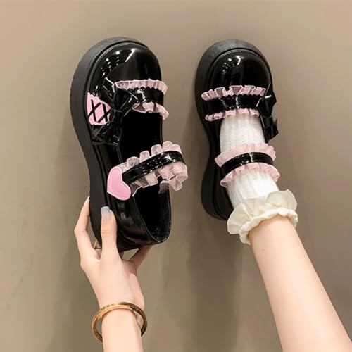 • Design: The Mary Jane shoes design with round toe, decor with pink lace and know-bow, design with heart shaped hook and loop closure, perfect combination for any style outfits, such as casual outfits, cosplay, y2k clothes, kawaii clothes, gothic clothes, gyaru outfits, and lolita dress,etc.