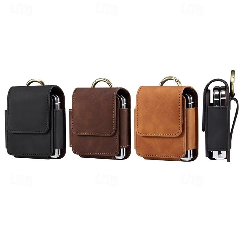 Men's Samsung Z Flip 6/5/4/3/2/1 Universal Phone Case Leather Case Belt Waist Bag Prop PU Leather Bag Phone Wallet Vintage Belt Phone Protective Case 12