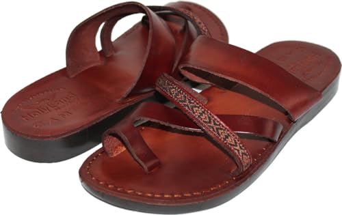 Holy Land Market Men/Women Biblical Jesus Leather/Embroidered Sandals/Slides From Jerusalem (Elijah Style) 7
