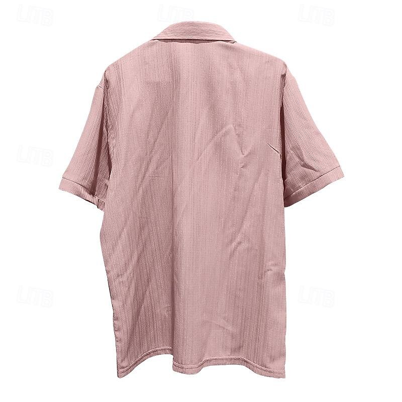 More information about Men's Shirt Summer Shirt Casual Shirt Beach Shirt Button Up Shirt Black Pink Navy Blue Light Blue Short Sleeve Plain Turndown Vacation Hawaiian Clothing Apparel Polyester Fashion Casual Comfortable