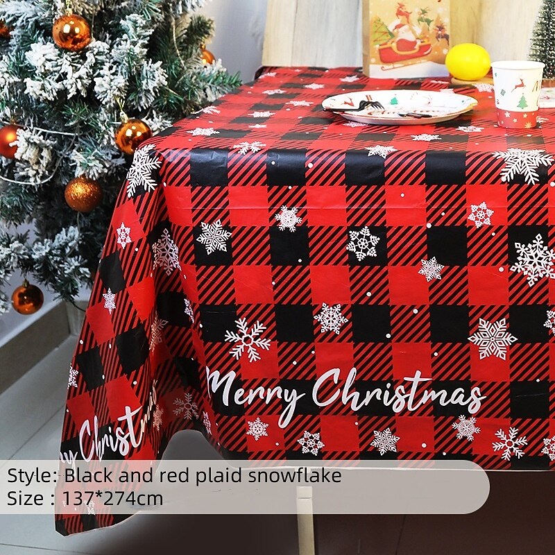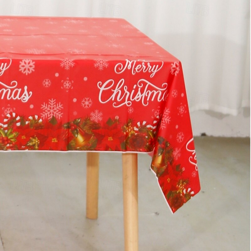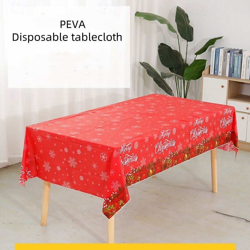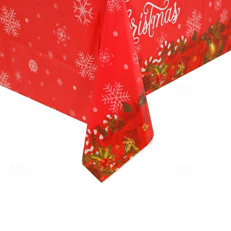HOT ! Christmas Disposable Tablecloth – Festive Snowflake Plastic Oil-Proof Table Cover for Holiday Party Decorations