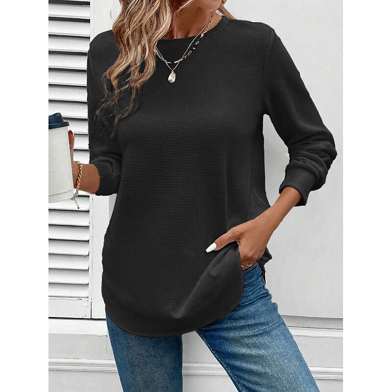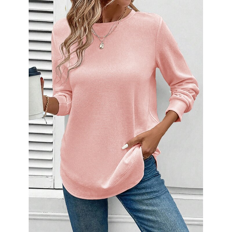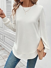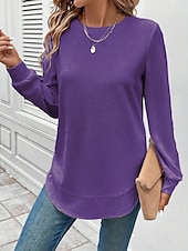 More information about Women's Pullover Plain Elegant Casual Long Sleeve Crew Neck Regular Tops Holiday Black White Pink Dark Pink Purple Spring Fall Winter