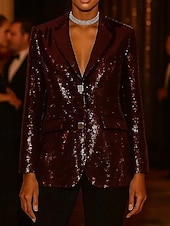 $104.99 - Burgundy Women's Women Blazer Sequin Sport Coat Metal Buttons Formal Wedding Guest Sequin Elegant Long Sleeve Notched Lapels Single Breasted 2025. Shop for cheap Blazers & Vests online? Buy at lightinthebox.com on sale today!