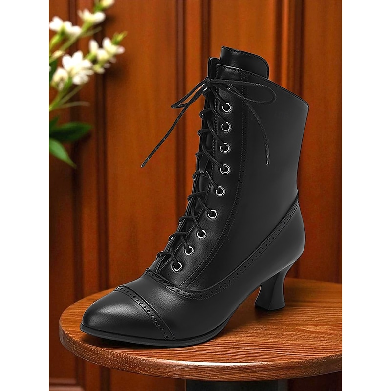 Women's Silver Victorian Edwardian Lace-Up Ankle Boots with Kitten Heel and Brogue Detailing - 1920s Retro Steampunk Style Dress Boots for Ladies, Perfect for Parties, Cosplay & Historical Outfit 17