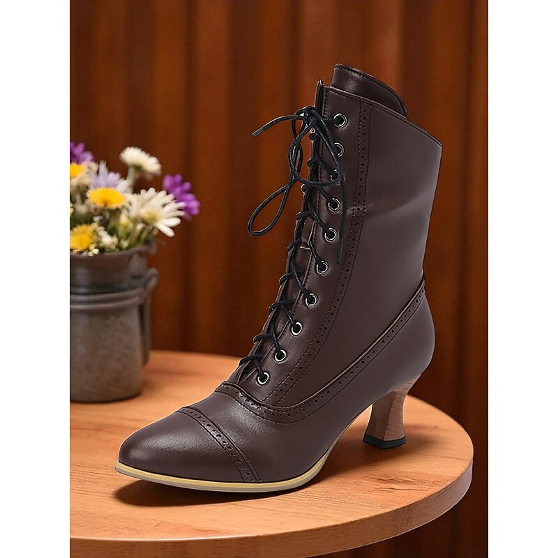 Women's Silver Victorian Edwardian Lace-Up Ankle Boots with Kitten Heel and Brogue Detailing - 1920s Retro Steampunk Style Dress Boots for Ladies, Perfect for Parties, Cosplay & Historical Outfit 24