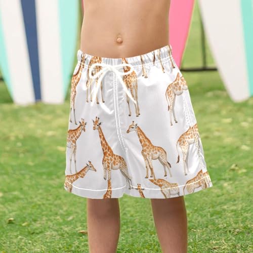 Pigsaly Boys' Swim Board Shorts Watercolor Brown Giraffes Boy's Swim Trunks Kids Swimwear 2T 6