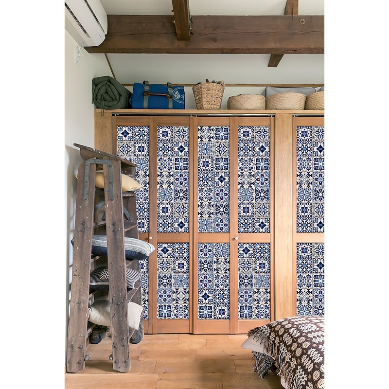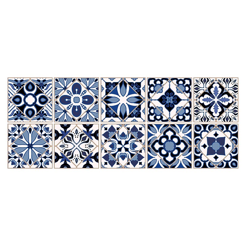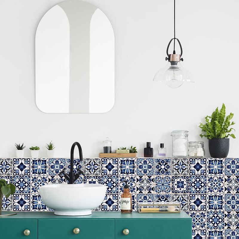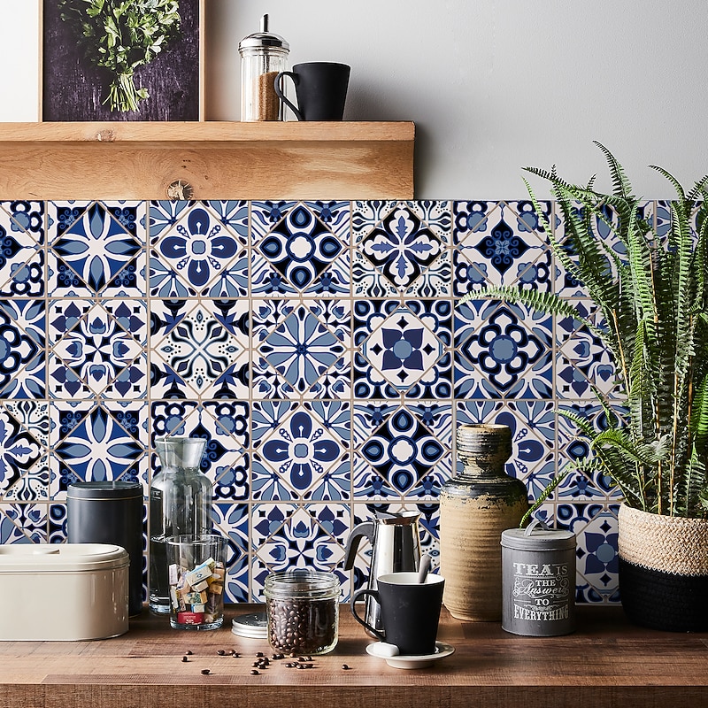 24/48pcs Waterproof Creative Kitchen Bathroom Living Room Self-adhesive Wall Stickers Waterproof Fashion Blue Nordic Tile Stickers 10