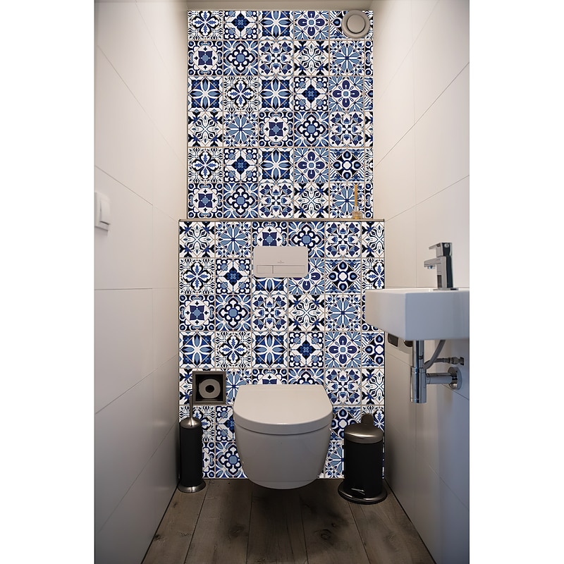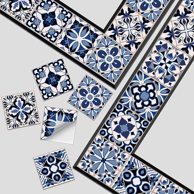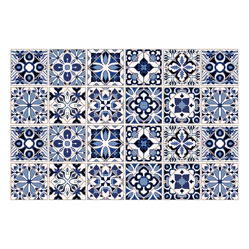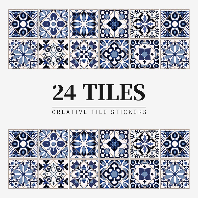 24/48pcs Waterproof Creative Kitchen Bathroom Living Room Self-adhesive Wall Stickers Waterproof Fashion Blue Nordic Tile Stickers 18