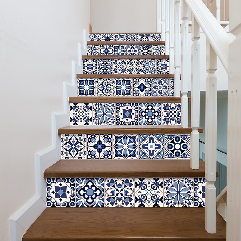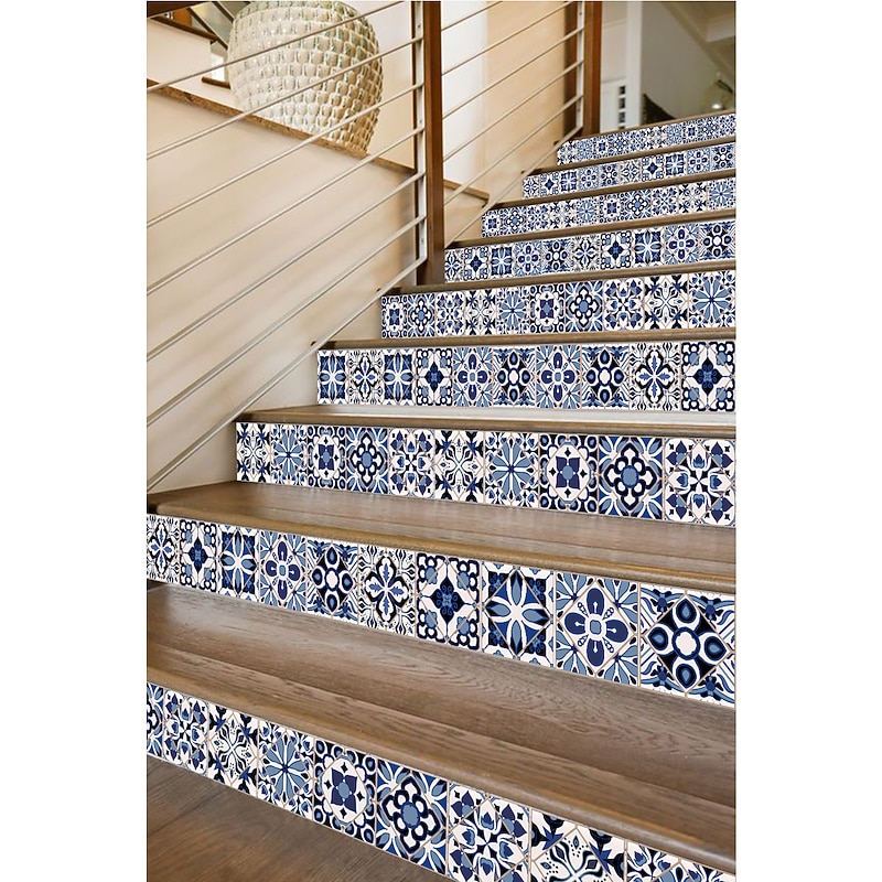 24/48pcs Waterproof Creative Kitchen Bathroom Living Room Self-adhesive Wall Stickers Waterproof Fashion Blue Nordic Tile Stickers 6