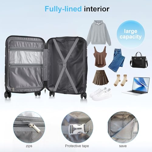 • 【Hard Shell Suitcases】 Hard case luggage with sturdy outer shell, PC+ABS material offers excellent impact flexibility and a sleek exterior finish that helps minimize visible scratches and scuffs. The interior skirt compartment of the 20 inch aluminum carry on luggage is equipped with compression straps to keep your clothes tidy.