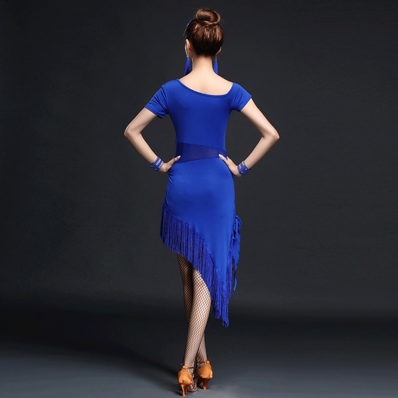 Latin Dance Dress Fringed Tassel Women's Performance Short Sleeves High Nylon Chinlon 4