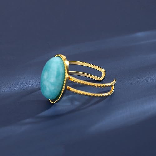 18K Gold Plated Fashion Statement Ring Oval Cut Natural Bohemian Turquoise Band Wedding Anniversary Ring Gift. Opening Adjustable Size 5-10 5