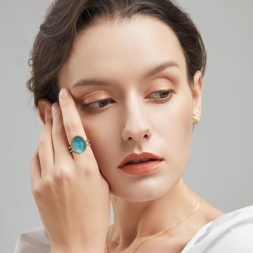 18K Gold Plated Fashion Statement Ring Oval Cut Natural Bohemian Turquoise Band Wedding Anniversary Ring Gift. Opening Adjustable Size 5-10 2