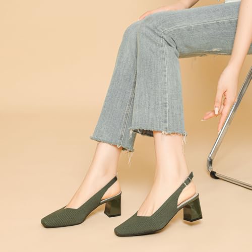 • Design: these 5cm/2inch heel slingback pumps with knit upper and designed with classic Square toe and Block heel, which will become your top pick for dress up