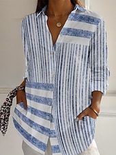 More information about Women's Shirt Striped Active Daily Stylish Long Sleeve Shirt Collar Regular Tops Daily Holiday Buttons Print Pink Blue Gray Spring Fall
