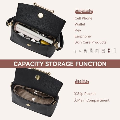 • Multiple Wear styles: The black crossbody bag comes with a strap and a top handle, allowing you to carry this bag as a crossbody bag, shoulder bag, or handbag that easily switches between different styles and easily adorns your outfit from day to day