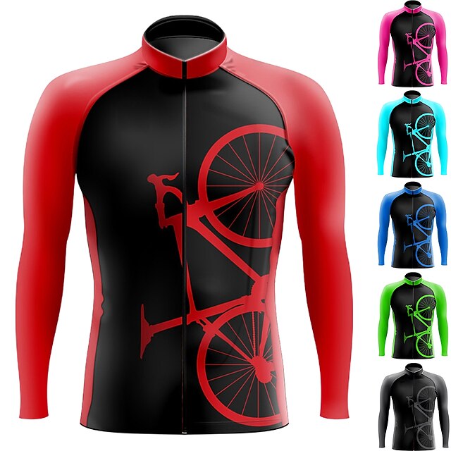 Men's Cycling Jersey Graphic Funny Long Sleeve Bike Jersey Top with 3 Rear Pockets Mountain Bike MTB Road Bike Cycling Quick Dry Reflective Strips Back Pocket Moisture Wicking Sports Black Pink Red 9