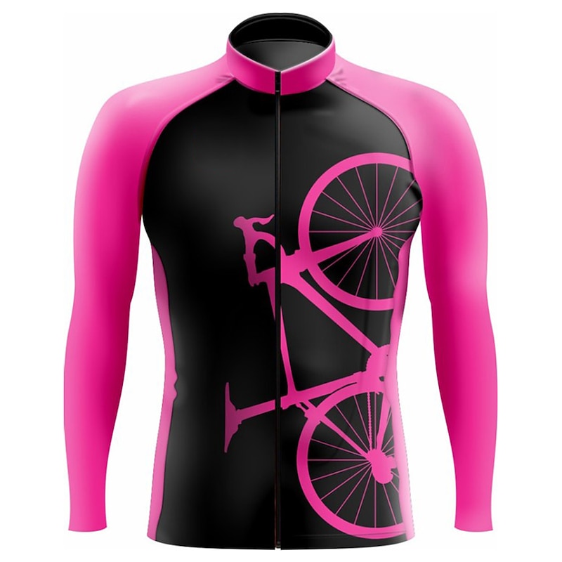 Men's Cycling Jersey Graphic Funny Long Sleeve Bike Jersey Top with 3 Rear Pockets Mountain Bike MTB Road Bike Cycling Quick Dry Reflective Strips Back Pocket Moisture Wicking Sports Black Pink Red 17
