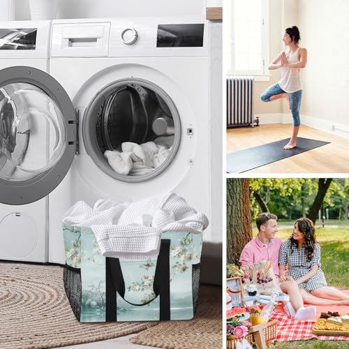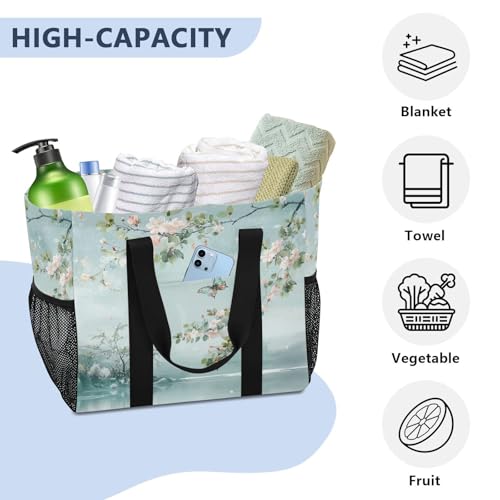 YETTASBIN Flower Butterfly Large Foldable Travel Tote Bag, Lightweight Waterproof Swim Pool Bag with Handles & Pocket for Beach Outdoor, Reusable Grocery Bag for Kitchen, Shopping 7