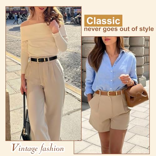 2 Packs Womens Belts for Jeans Ladies Belt for Dresses Fashion Leather Belt with Gold Buckle 4