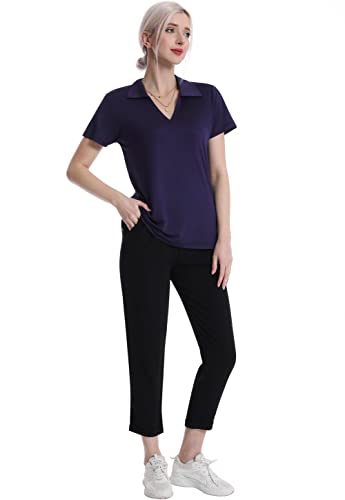 Femdouce Women's Polo Shirts V-Neck Short Sleeve Moisture Wicking Collared Shirts for Women Golf Polo Shirt for Work 1-3 Pack 6