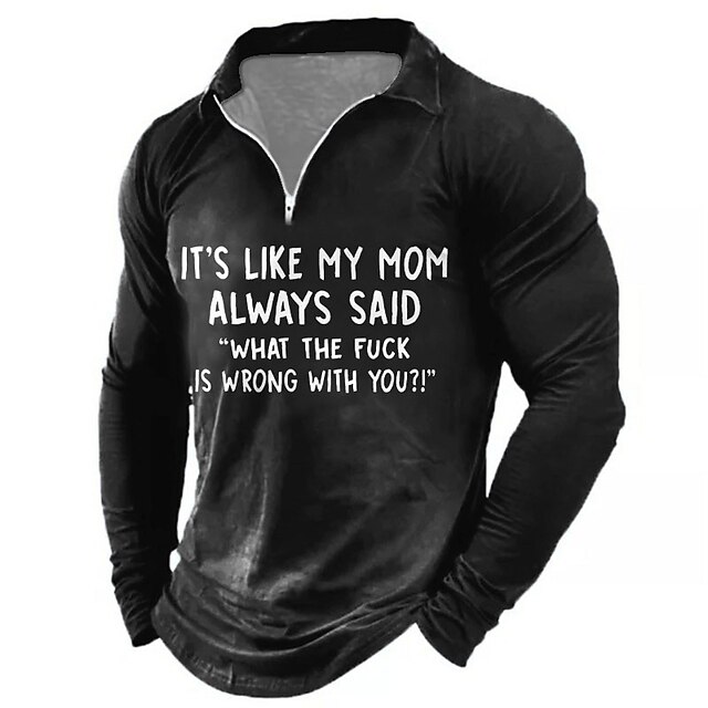 HOT ! Men's Funny Zip Polo Shirts Golf Shirt Long Sleeve Polo Shirts Collared Shirts Vintage Casual Festival Wear Party Outfits 3D Print Quarter Zip Polo Spring & Summer Black Wine Navy Blue