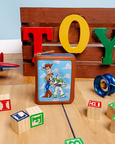 • Featuring incredible detail to bring Andy's Room to life, this Loungefly wallet is made of vegan leather (polyurethane), zips closed with sturdy metal hardware, and has credit card slots as well as a clear slot for holding your ID.
