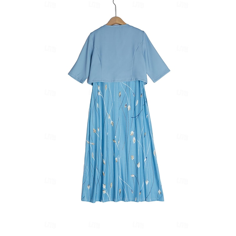 Highlights [Fabric]: Crafted from a high-quality blend of polyester and cotton spandex jersey, this dress set offers a smooth texture and a micro-elastic finish, ensuring comfort and a subtle, flattering fit. [Fit]: Designed with a regular fit, the A-line silhouette of the dress gently skims over the hips, providing a flattering look for a variety of body types. The midi-length adds an elegant touch suitable for all occasions. [Design Highlights]: This two-piece ensemble includes a stylish floral print dress and a matching bolero-style jacket. The jacket features three-quarter sleeves and an open front, making it a versatile layering option for both day and night. The outfit also boasts practical pockets and a classic crew neck, combining elegance with functionality. [Occasions]: Ideal for spring and summer events, this dress set is perfect for daily wear, outdoor activities, weekend gatherings, and more. Its fashionable and mature style offers both grace and charm for a wide range of settings. [Size Range]: Available in sizes S, M, L, XL, and XXL, this ensemble caters to various body shapes, ensuring a perfect fit for everyone.