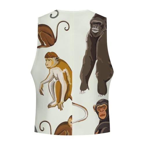 HOT ! Types of Monkeys And Gorillas Men's Suit Vest Slim Fit V-Ncek Waistcoat Business Casual Vest