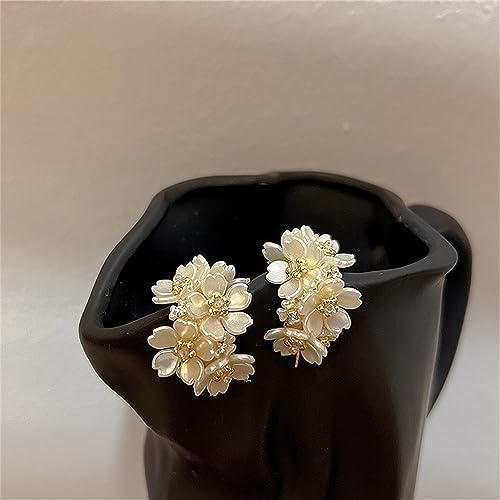 HOT ! CZ Pearl Flower Huggie Hoop Earrings for Women Girls Sterling Silver Post Dainty Shell Pearl Heart Clover Flowers Cluster Statement Dangle Drop Big Hoops Crystal Studs Hypoallergenic Elegant Wedding Birthday Jewelry Gifts
